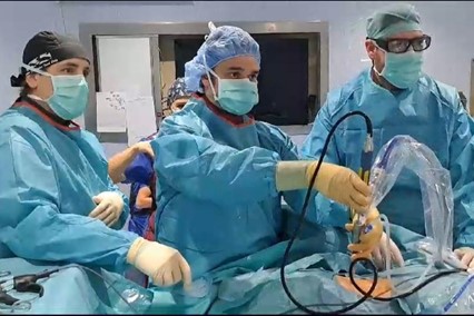 Cirujanos adscritos al Servicio de Cirugía Ortopédica y Traumatología intervienen a dos pacientes de descomprensión y discectomía endoscópica interlaminar en hernia discal L5-S1 con técnica endoscópica.